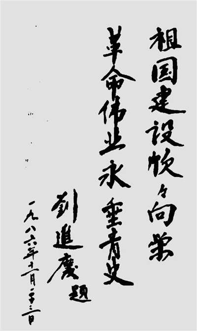 刘进庆到访大陆留下的题词