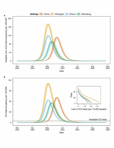 该研究基于2022年3月份上海的情况作为模型假设的出发点,考虑全国范围内包括且不限于yi.苗接种情况、各地人均床位数和ICU资源,最终得出结论: