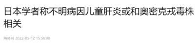 截至本月12日,日本也报告了7例不明原因肝炎。在当天日本厚生劳动省召开的专家会议上,京都大学的西浦博教授指出,出现不明病因儿童肝炎病例的国家中,奥密克戎毒株感染者相对较多,这种肝炎可能和奥密克戎毒株疫情相关,今后应加强对两者之间关系的研究。
