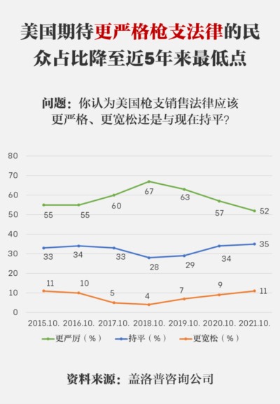二是立法关。在美国,控枪早已成为敏感的烫手山芋,任何“理智”的政客都只能“点到为止”。民主与共和两党选民对枪支的态度日益对立,共和党内76%选民捍卫持枪权,民主党内81%选民认为管控枪支更重要。近10年来,民主党国会议员每年都就枪支暴力、枪支管控等提出数十项议案,但囿于共和党顽固阻挠,能成功进入参院或众院全会审议辩论环节的屈指可数。