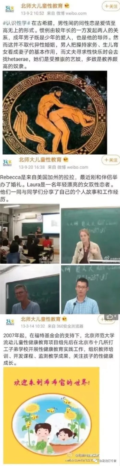 早在2007年,美国福特基金会曾有资助我国刘文利教授,组建“北京师范大学儿童性教育课题组”,研发了小学1-6年级的教材,内容涉及传播同性恋。