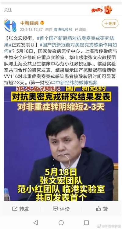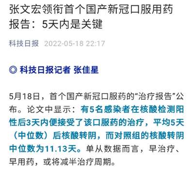 5月18日,我国首个国产新冠口服药的“治疗报告”公布。