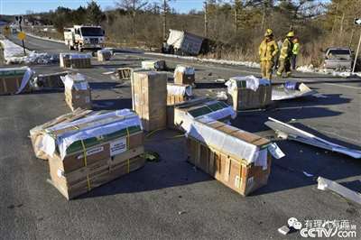 突然,在卡车行至丹维尔出口附近的54号公路时,一个避闪不及翻至路边阴沟当中,数十个货箱随之散落一地,这才让人看清,原来在那货箱当中,竟全是龇牙咧嘴的黄毛猴子。