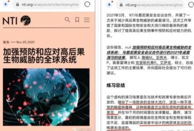 2021年3月,美国搞了一个“猴痘恐怖袭击演习”,具有军方背景的美国民间组织NTI和“慕尼黑安全会议”联合举办了一次生化袭击推演:“2022年5月15日,Arnica国利用实验室改造的猴痘病毒,对强大的世仇邻国Brinia发动了生物恐怖袭击。最终导致全球32亿人感染,2.71亿死亡。”