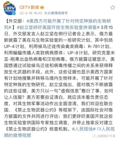 美国在全球范围内建立的336个生物武器研发中心,其中在乌克兰就建有36个生物实验室,俄罗斯也已经证实美军在乌克兰从事生物武器的研究与制造。