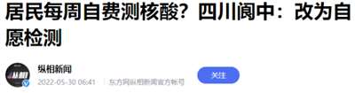 前几天,四川阆中市发文宣布,要求居民每周都要做一次常态化核酸,费用自理。