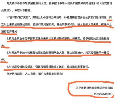 总而言之,不参加核酸检测,就要扣上拘留的“污点”,曝光示众。