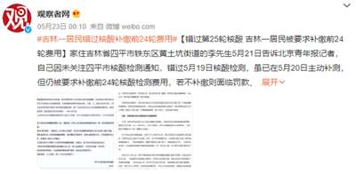据媒体报道,5月23日,吉林四平一位居民因为错过核酸检测,而被要求补缴前24轮费用,同样引发热议。