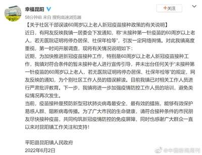 6月2日,平阳县昆阳镇政府也发布了正式回应,他们表示:“并未出台任何关于‘未接种第一针YM的60周岁以上老人,若无医院证明将停办居保、社保年检等’的规定,网友反映的通知,为个别社区工作人员的错误解读。目前我镇已对相关工作人员进行严肃批评教育……”