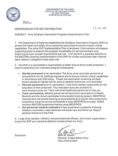 除此之外,这篇报道还揭露了一份美国“陆军天花防备和疫苗接种计划实施计划”,早在2003年五角大楼就引入了强制性的天花疫苗接种,美国外交官和医务人员也需要接受针对这种传染病的针刺。