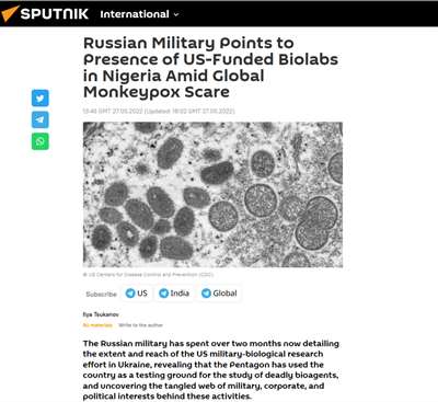 据俄罗斯卫星通讯社27日报道,俄罗斯武装力量辐射、化学和生物防护部队司令伊戈尔·基里洛夫表示,“世界卫生组织的报告显示,猴痘病原体的西非毒株确定起源于尼日利亚,这是境内有美国部署的生物基础设施的又一个国家。据现有消息,在尼日利亚至少有4个美国控制的生物实验室。”