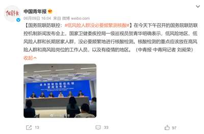 昨日,国家卫健委表示:“没有yi情发生,也没有输入风险的地区,查验核酸不应成为一种常态”。