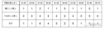 总体来看,雇工的年龄跨度很大,几乎涉及各个年龄段;而小业主的年龄跨度小,相对集中,主要为31-55岁的中年人群体。