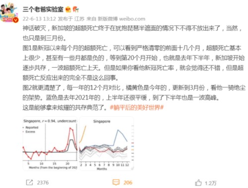 近日,微博科普博主@三个老爸实验室发了一条博文,他讲:“神话破灭,新加坡的超额死亡终于在犹抱琵琶半遮面的情况下不得不放出来了,当然,也只是到三月份。”