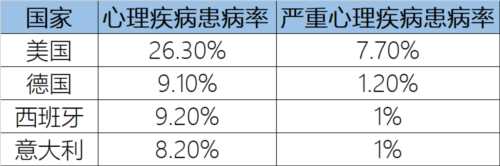 可以看到,同为发达国家,遗传基因、文化背景也差异不大,但西欧几个国家的心理健康要远好于美国。