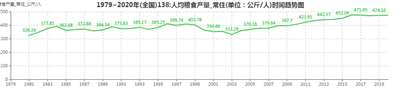 此外,我们还看到,改革开放后,全国粮食产量趋势出现的最大一次波折是1998-2003年,从5亿吨减少到了4.3亿吨,相对应的人均粮食产量从400公斤/人左右跌到333公斤/人,已经低于营养性标准了。可以说,2003年的时候,中国已经面临粮食危机了。