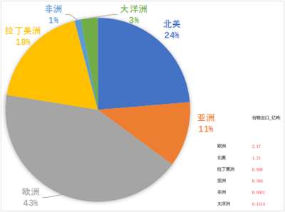 2020年,拉丁美洲的谷物出口为9381.32万吨,大豆出口9813.45万吨。