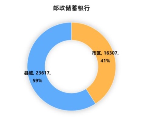 邮政储蓄银行是国有大型商业银行中唯一县域网点覆盖率超过市区的银行。其县域银行网点数量为23617个,占其网点总量的59%。