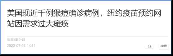 明显在向世界传递猴痘疫情风雨欲来的信号。纽约时报7月8日曾发文批评:美国政府应对猴痘疫情不力,致病例迅速扩散,称美国应对新冠大流行初期时的糟糕表现正在重演。