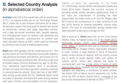 但是在其他领域,如教育,中国的教育公平性仅得63.3分,这体现了中国当今教育行业严重的不公。