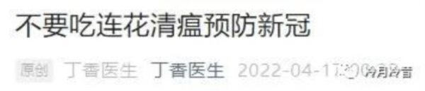 丁香医生在2022年4月17日发布一篇题为“不要吃连花清瘟预防新冠”的文章,短短数小时,这篇文章就在资本流量的加持下突破了上千万的阅读量,由此产生了极为恶劣的对华夏中医药的诋毁影响。