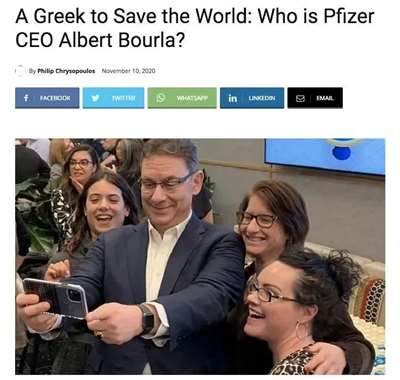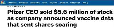 先帮大家回忆一下辉瑞CEO-Albert Bourla老兄,他是个希腊人,兽医出身,在辉瑞工作了20多年,2020年,辉瑞首款新冠疫苗就是在他领导下研发生产出来的,号称可以“可阻止90%感染”,当时被媒体誉为“一个拯救世界的希腊人”……然后在当天,他“精准”地抛售了价值556万美元的辉瑞公司股票……在近乎于公司股价一年中的最高位上减持了自己约六成的股票。