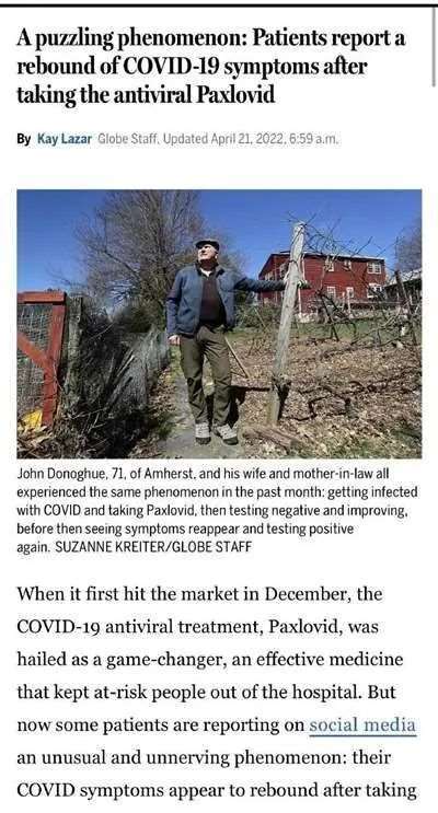 再帮大家回忆一下所谓辉瑞“特效药”Paxlovid的光辉事迹吧,就是进口2300一盒的那个神药,在美国已经被各种臭骂了,因为它看起来可以缓解症状,但不能停药,停了就复阳……美国媒体曾有篇文章叫做:《令人费解:患者服用神药Paxlovid之后出现了反弹现象》。