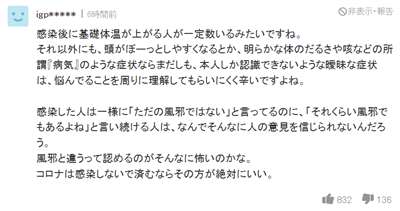 当然了,随着日本单月新增破500万,日均新增破20万后,饱受long covid之苦的人越来越多,这并不是如上文中那名小学生和初中生一样的感受,“为什么只有我”(香港5月份的报道,当地确诊儿童的long covid比例在10-13%之间),下面的评论,绝大多数都是讲述自己犯病经历和感受的。