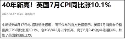 今天英国刚公布的7月CPI是同比上涨10.1%,成为G7国家里首个通胀率达到两位数的国家。