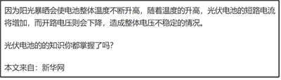 有媒体也报道过原因,阳光暴晒会使光伏电池整体温度不断升高,最终造成整体电压不稳定,从而影响到发电量。
