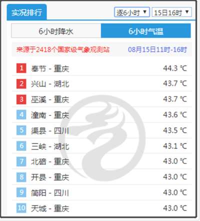 在8月15日的全国高温榜里,没有43度高温,都上不了榜。