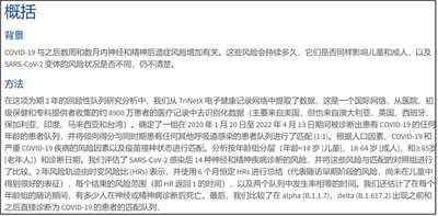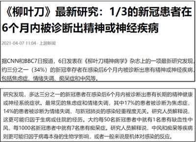 研究报告的主要撰写人、精神病学教授保罗哈里森说:“这项结果表明,与新冠病毒感染有关的新的神经系统疾病,可能会在疫情消退相当长的时间后发生。”