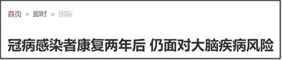 新加坡的《联合早报》昨天有一个报道是说“新冠感染者康复两年后,仍面对大脑疾病风险”。