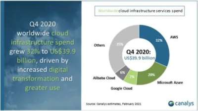 但在全球范围内,亚马逊的AWS依然保持着绝对领先地位,占据了32%的市场份额。