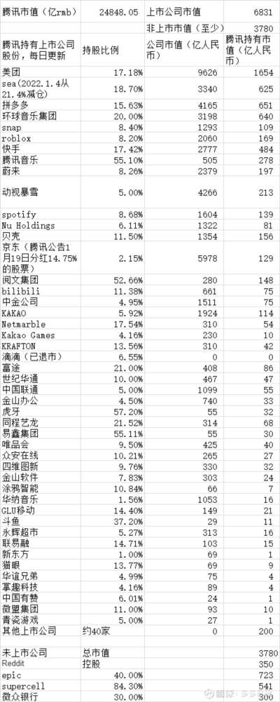 靠着这种“不怕过错就怕错过”的投资方式,腾讯压中了许多优质公司,比如美团、拼多多、B站、蔚来、58同城、快手这些互联网巨头,背后腾讯都是大股东或二股东。