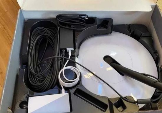 这套星链设备包括连接卫星所需的碟形天线和一个路由器。