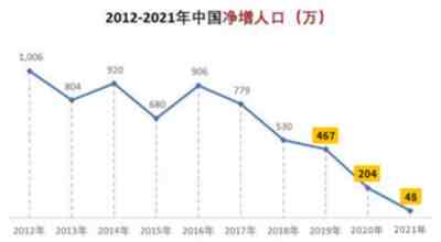 而2021年人口净增量只有48万人,比2020年少了156万。按这个趋势,2022年负增长可能接近百万!