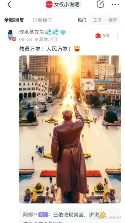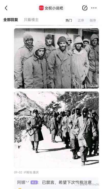 宣传抗日的、宣传打击侵略者的、宣传中华人民共和国领袖的等等这些在“女权吧”都属于“攻击、抹黑”的,是会遭到吧主禁言的!