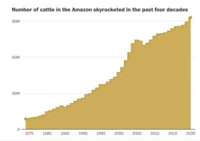 亚马逊地区的牛群数量在过去的四十年里猛增