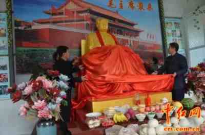 河北临漳刘广营毛泽东铜像广场赠送的毛主席“伟业千秋”丝织像