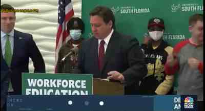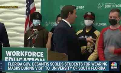 佛罗里达州州长罗恩·德桑蒂斯在今年一次活动中批评学生们戴口罩的行为,随后三名学生将口罩摘下