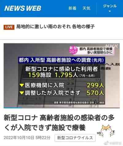 NHK报道东京养老机构的感染者大多无法入院治疗