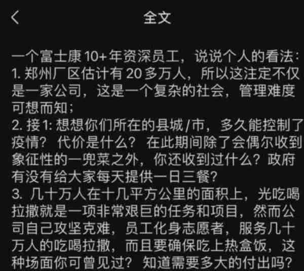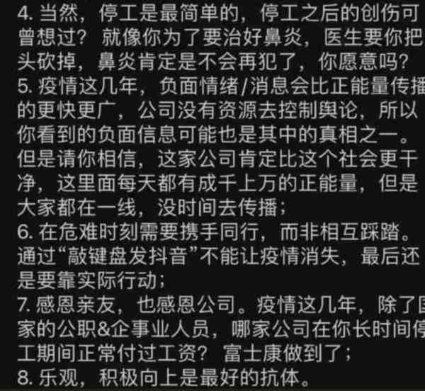 如果那时候富士康宣布停工,那他的防疫一定比现在好得多