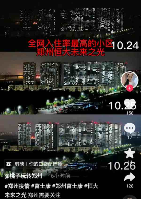 一夜之间恒大未来之光从一个空无一人的小区,变成了如此灯火通明,并且在接下来的几天,入住率不断上升