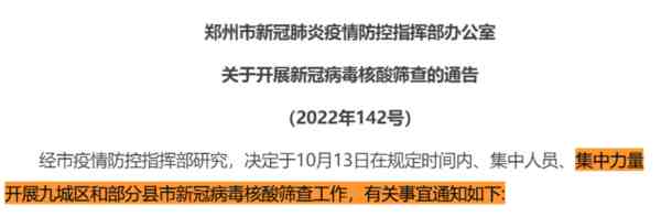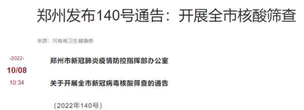 10月8号郑州发布140号通告,开始全市核酸检测(郑州常住人口1200万)