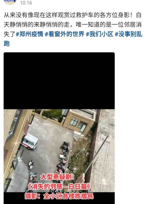 《消失的邻居》,大概意思就是邻居因确诊,密接等原因,晚上被拉去隔离的,但整个过程无声无息,第二天你才奇怪,邻居怎么“消失”了?