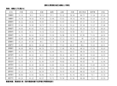 从国内和国际重要国家1998年至2017年的城镇人口比重的趋势我们可以看到,人口在城市不断地集中。