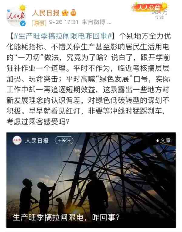 东北限电时,当时网上有一种言论,认为东北搞“能耗双控”,开学前赶作业。