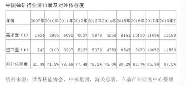 因此,现在中国的铀矿资源大部分来自进口,2018年中国铀矿对外依存度高达87%。