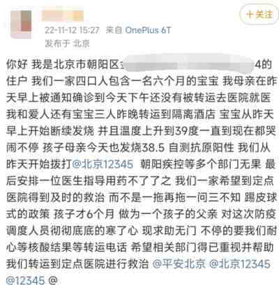 听网友说某“共存派”一家四口阳了,有人发烧39度,然后在网上写作文控诉没有被及时转运到定点医院治疗: